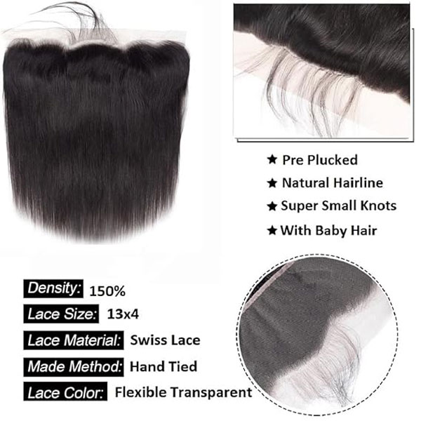 Frontal Closure Texture: 13X4 Straight transparent Frontal, Hand-Tied Swiss Lace Front Closure, Thinner and More Flexible Transparent Lace, Blended into Skin Perfectly. 150% Density, Super Thick.