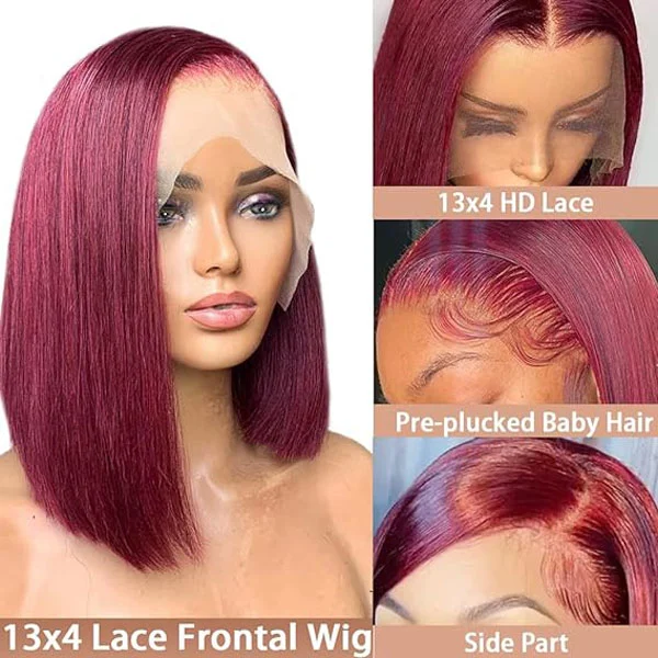 99J lace front wigs human hair bob wig quality: HD lace front wigs human hair, lace Not stained when hair was toned, burgundy bob wig human hair glueless lace frontal wigs pre plucked, cut from young donor, cuticle one direction aligned.