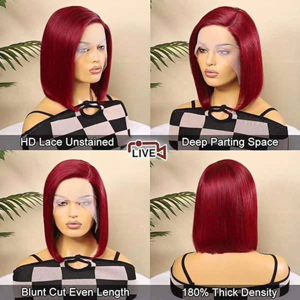180% density human hair wigs for black women length & cap size: blunt cut burgundy bob wig is even length cut all around, front is same long as two sides & back.cap size adjustable 21.5 to 23.5in fits small, medium, large head, one size for all.