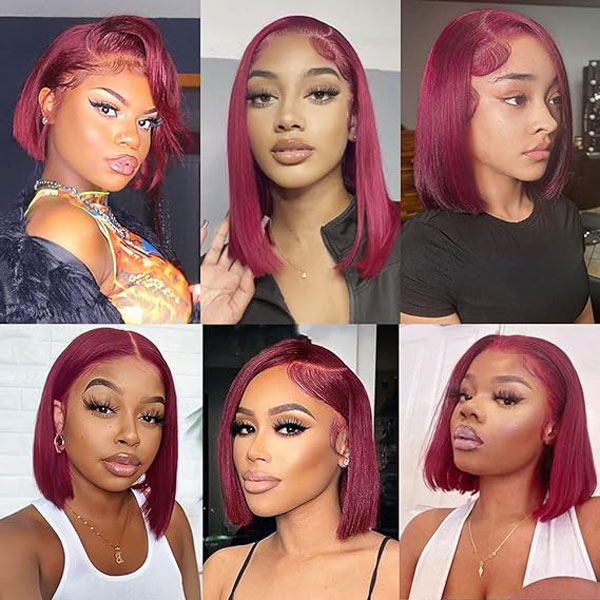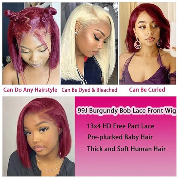 Superb definition of burgundy bob red wig human hair advantage: this 99j burgundy bob wig can take iron flat heat, hold curls well, can be dyed, bleached and restyled, still keeps fresh new without shedding, No tangle no matter hair gets wet or not.